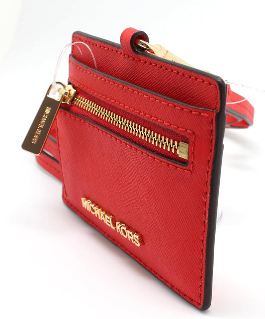 MICHAEL KORS Women's Jet Set Travel Saffiano Leather Card Case Lanyard (Dark Sangria)