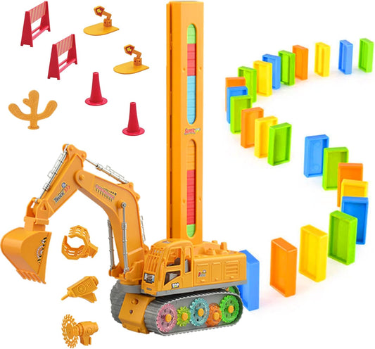 Domino Engineering Vehicle Set, 120PCS Automatic Domino Laying Train Toys with Lights & Sounds That Prepares Your Domino Rally Experience Quickly and Automatically for Kids Age 3+